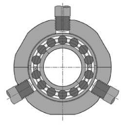 标准型悬挂式轴承只有上面有一个单独的螺口,它悬挂在一个单独的悬杆上,这样的设计可将螺旋输送机原料流的阻碍减至最小。对于这种应用可采用上下两个悬杆定位外壳,即双螺口悬挂式轴承。