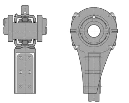 每个拉杆式轴承包括一个可分离式轴承座,该轴承座中包含一个位于转动轴承箱内的固定端(GR)轴承(参考515页)。拉杆式轴承有两种基本类型——“T”形拉杆式轴承和瓦形拉杆式轴承,也可进行修改以适用于各种悬杆及其附属装置。