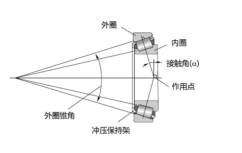 此种圆锥轴承在承受径向载荷的同时可承受双向轴向载荷。可在轴承的轴向游隙范围内限制轴或外壳的双向轴向位移。