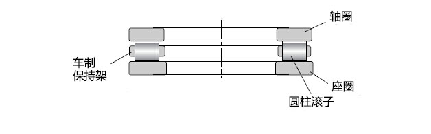 由垫圈形滚道圈(轴圈、座圈)与圆柱滚子和保持架组件构成。圆柱滚子采用凸面加工,因此滚子与滚道面之间的压力分布均匀。